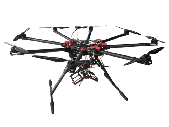 QK-1200八旋翼双镜头旋转倾斜摄影平台是一款低成本多功能无人飞行器。机身由碳纤维板和管构成,方便进行拆装以及故障检修。机臂为伞折式,便于操作。电动起落架可实现自主收放控制,不会阻碍任何角度的信息采集,可进行风险较高的项目作业。