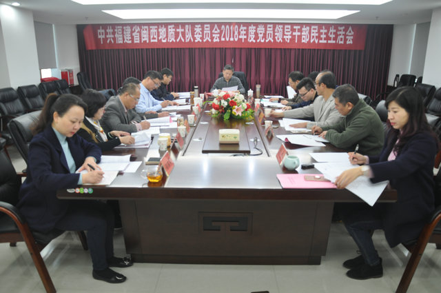 1月25日上午,9728太阳集团党委召开2018年度党员领导干部民主生活会。队党委成员参加会议,省地矿局督导组组长、局党组成员、总工程师周珍琦同志,局人事处副处长林贵川同志到会指导。