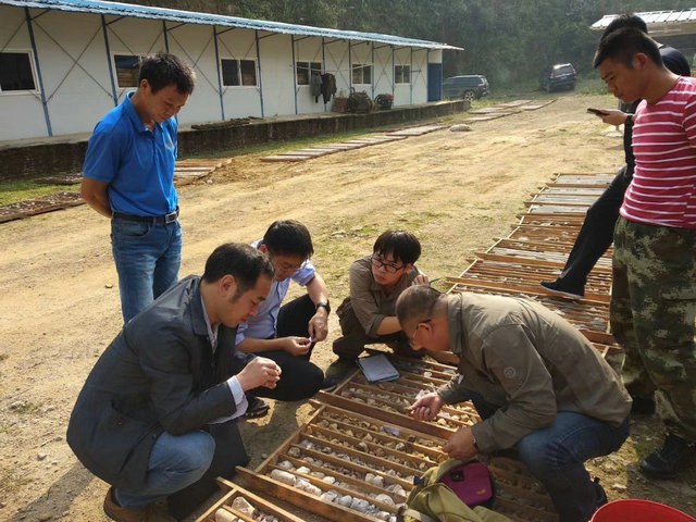 12月6日-12月7日,检查组先后到广西古木口金矿区、新胜金矿区、盐山金矿区,认真听取了项目负责汇报和其他技术人员的想法,提出:第一,金矿区都属于构造控矿,对于断层破碎带的寻找和控制是重中之重;第二,赋矿岩石为构造角砾岩和碎裂岩,工作中区别每个矿段不同赋矿岩石,建立其相应的找矿标志;第三,矿区外围工作以“就矿找矿”为原则,建立矿体空间赋存规律来开展工作。随后,检查组深入野外地表和老硐进行实地调查,仔细观察前期施工的钻孔岩芯等,提出具体指导意见。
