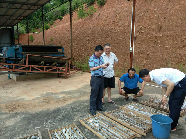 同时,为保证项目工作的良性循环,9728太阳集团也高度重视项目工作质量和找矿成果。在初步完成区内地表调查工作后,6月13日至6月17日队总工程师邱盛安带领总工办高级工程师郑振梅、资环院院长李昭升一行莅临广西,对新胜矿区和盐山矿区进行实地考察。