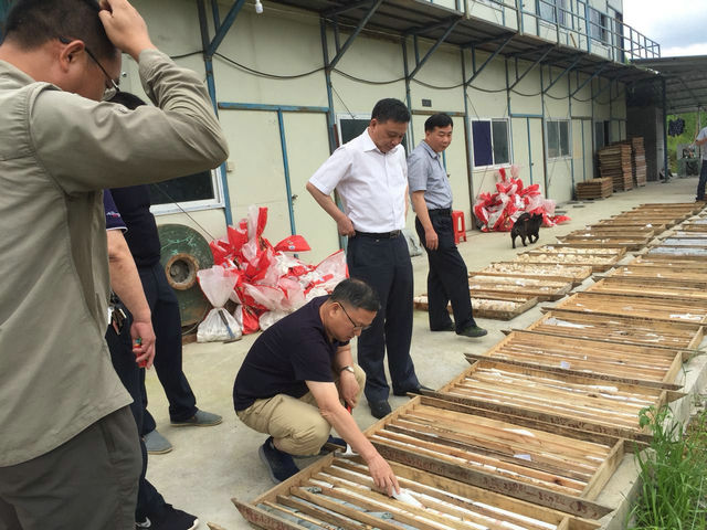 周珍琦总工程师首先听取了项目组工作情况介绍,并详细寻问了项目工作进度、完成工作量及取得的勘查成果;随后,深入现场查看钻孔岩芯,对矿区矿体的规律进行实地了解;最后,周珍琦总工一行充分肯定了项目组工作成果,并对下一步工作计划作出指示。
