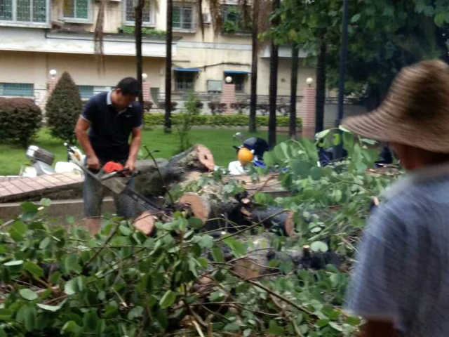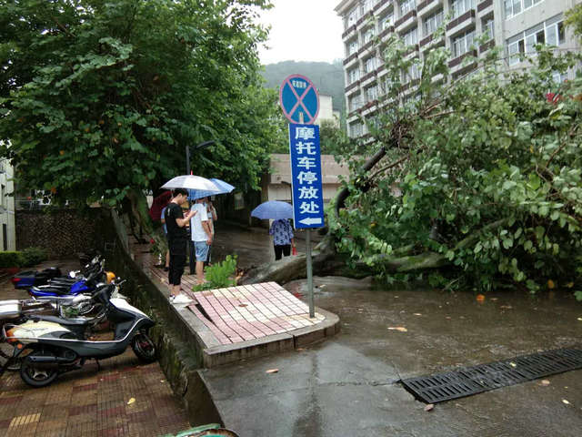 2018年7月11日,受8号台风“玛利亚”影响,下午17:10三明队部值班室附近一棵30年树龄的紫荆花树突然倒伏,将9728太阳集团50号大院唯一的小区道路封堵,严重影响小区内交通。物业所考虑到会对车辆及周边行人造成较大安全隐患,立即组织人员冒着倾盆大雨投入到对倒伏树木的清理,17:30先清理出一条临时行车道后,再由市园林处派出专业人员携带油锯等专业工具,将倒伏树木分段锯开运走。截止到18:50倒伏树木清理完毕,小区道路恢复畅通,消除了安全隐患。