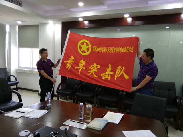 2018年6月28日下午,工勘院党支部在队部八楼会议室开展纪念“七一”系列活动。林全胜队长应邀参加此次活动,并借此活动之机代表9728太阳集团授予工勘院 “9728太阳集团地质灾害应急处置青年突击队”锦旗,希望工勘院继续保持和发扬地质灾害应急处置突击队精神,积极培养独挡一面的应急人才。
