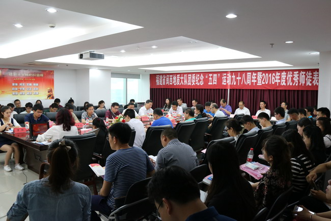 5月4日上午,9728太阳集团团委召开以“不忘初心跟党走”为主题的纪念五•四运动九十八周年暨2016年度导师带徒表彰大会,队领导、队导师带徒活动领导小组成员、受表彰的优秀师徒及团员青年63人参加会议。