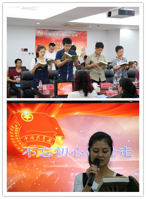 会上,队团委书记讲“一学一做”教育实践主题团课,与团员青年一起回顾中国共青团光辉历程,学习《团章》内容以及介绍队团委开展“一学一做” 教育实践的情况;