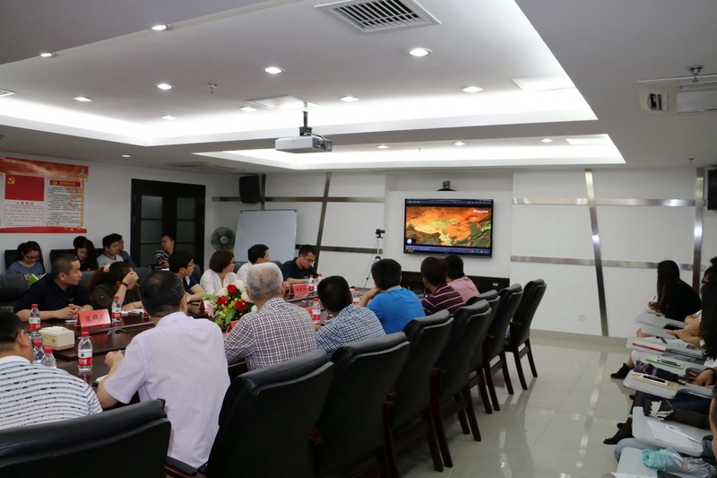 ▲优秀组织单位地质勘查院党支部书记李南生介绍组织经验