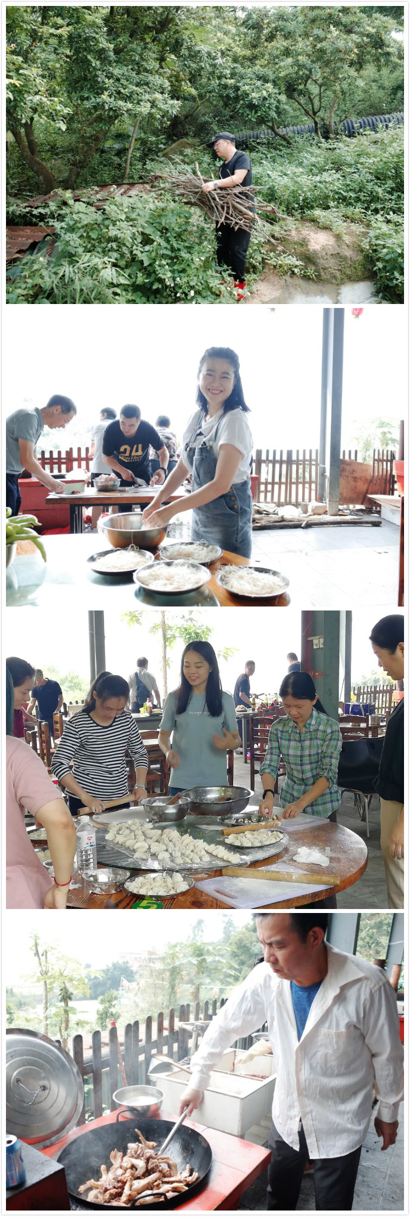 为了增加活动的趣味性,活动当天的午餐由我们会员自己张罗。出发之前,支委们给每个会员都安排了任务,划分了采购组、包水饺组、烧烤组、大厨组、后勤组、摄影组6个小组。组员们都摩拳擦掌,热情高涨,一展才艺。
